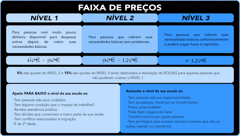 Escala de preços abaixo.